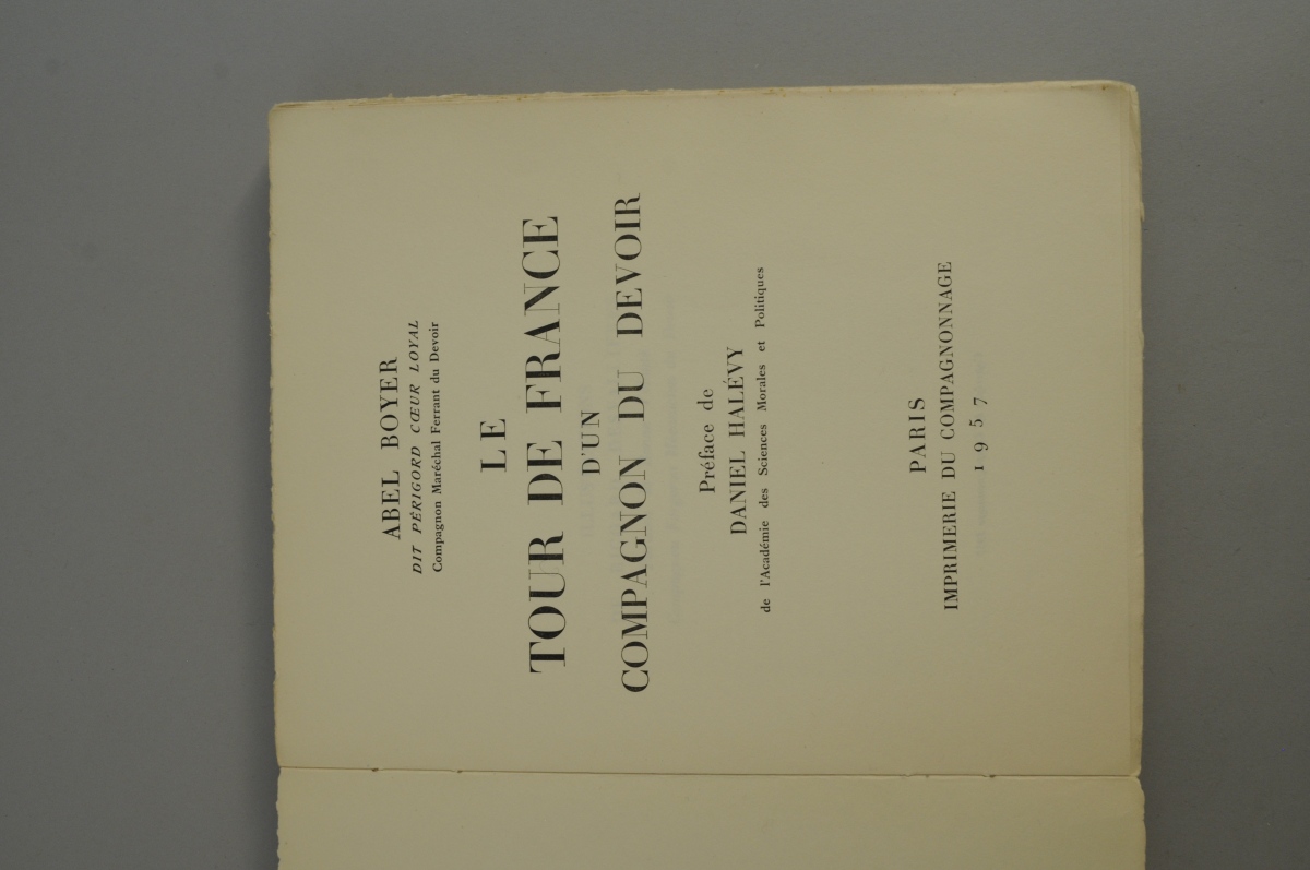 BOYER, ABEL (dit Périgord Coeur Loyal). Le Tour de France d'un Compagnon du Devoir. Préface de Daniel Halévy, illustrations de Richard Desvallières. Paris, Imprimerie du Compagnonnage, 1957. In-8, broché.