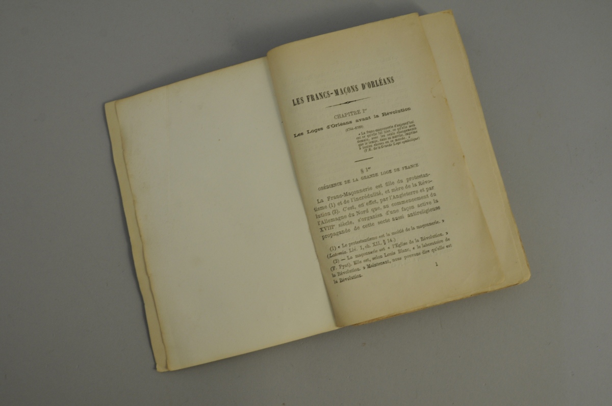 U.P. Essai sur les Francs-maçons d'Orléans (1740-1886). Paris, Cenabum, 1886. Épreuve. In-12, broché.