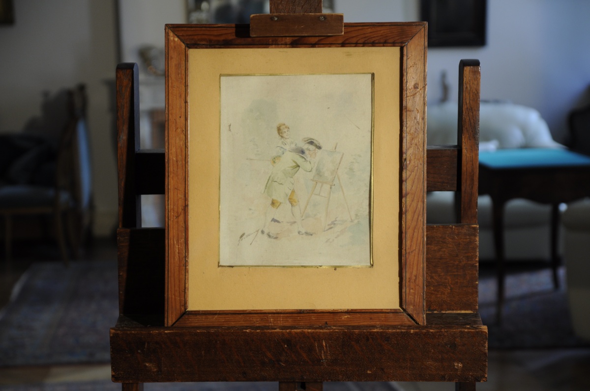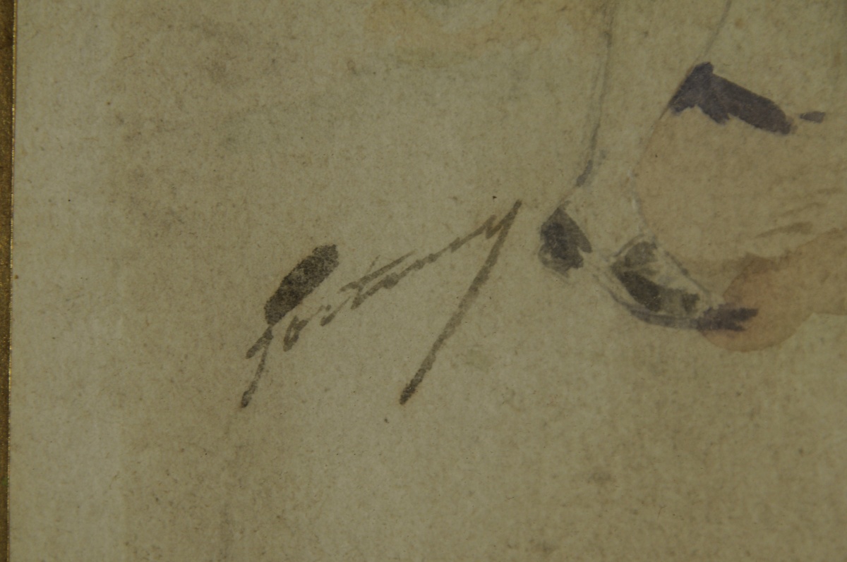 École ESPAGNOLE vers 1900.L’amateur d’art.Plume et lavis.26 x 21,5 cm.Porte...