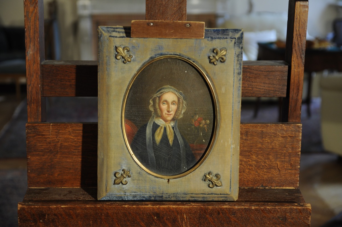 École FRANÇAISE du XIXème siècle.Portrait d’une femme près d’un bouquet...