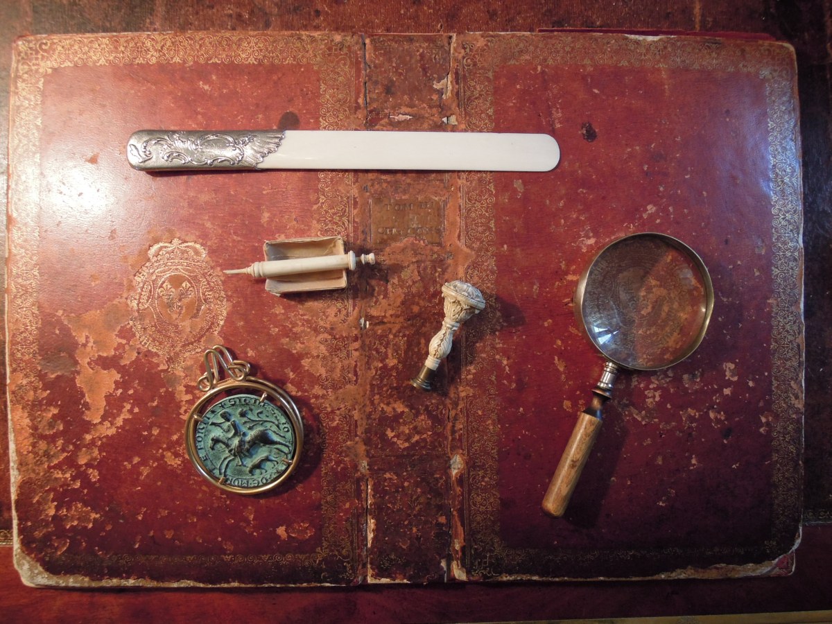 NÉCESSAIRE DE BUREAU comprenant: COUPE-PAPIER en ivoire, le