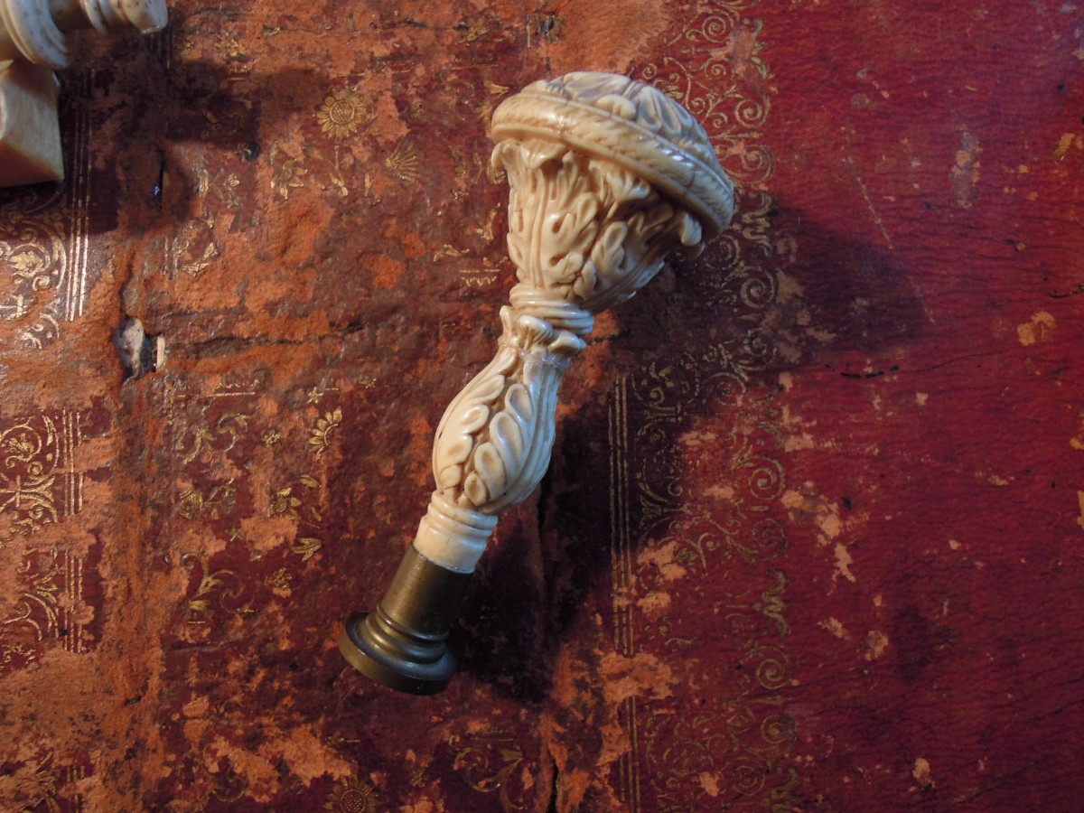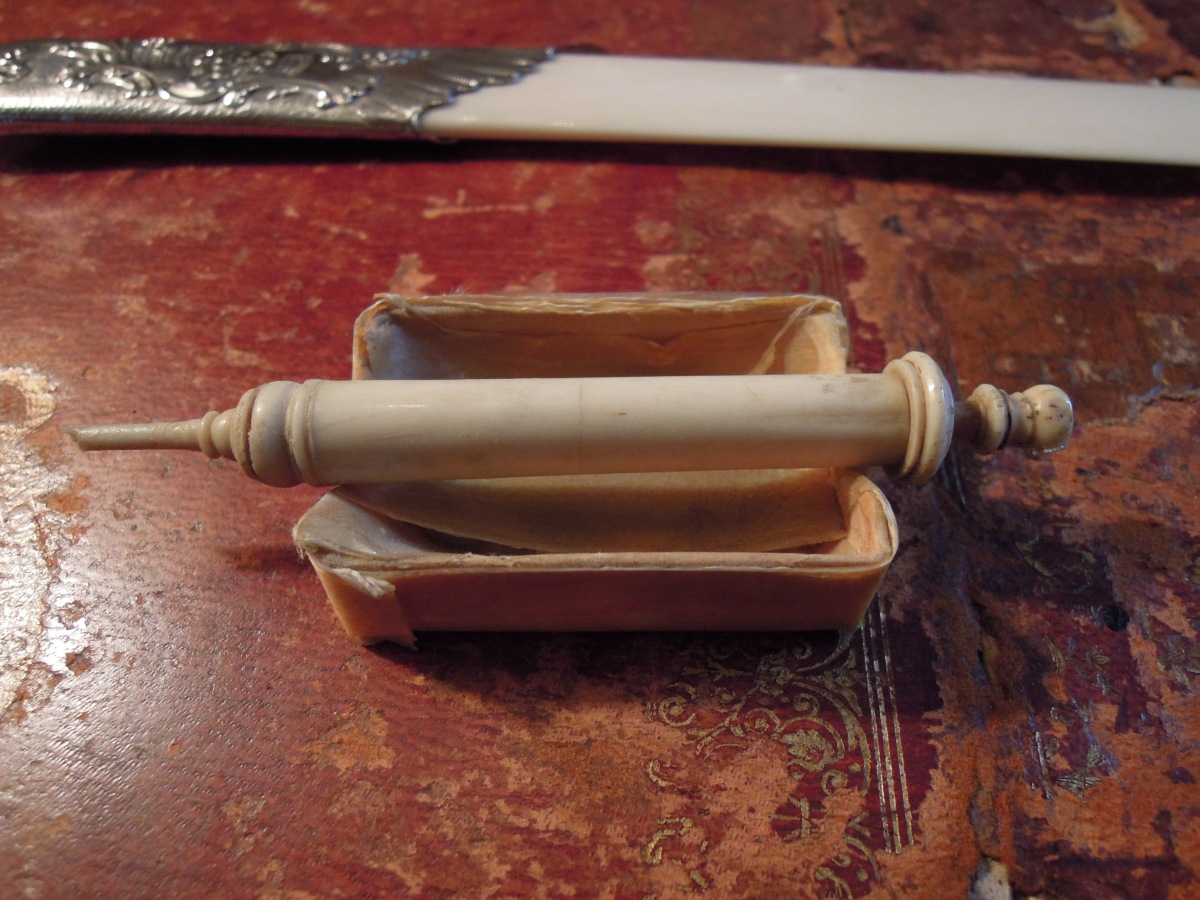 ivoire feuillagé monogrammé "FD", SERINGUE en ivoire (Long. 10,5 cm,