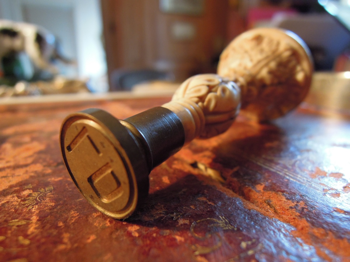 orné d'une médaille en bronze d'un veneur (Diam. 6,5 cm), SCEAU en