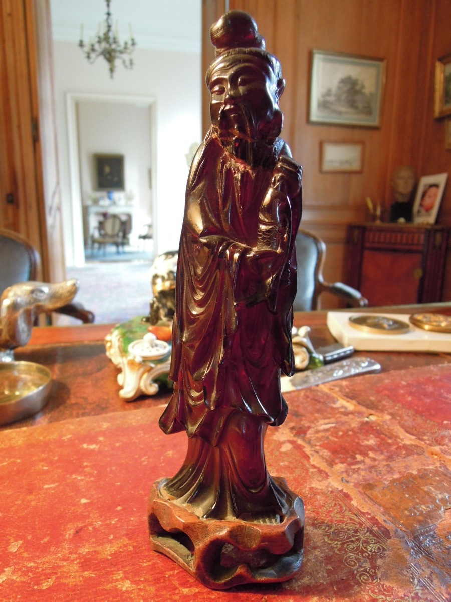 - PÉCHEUR À LA CARPE sur un socle de bois (Haut. tot. 18,5 cm, restaurations).
