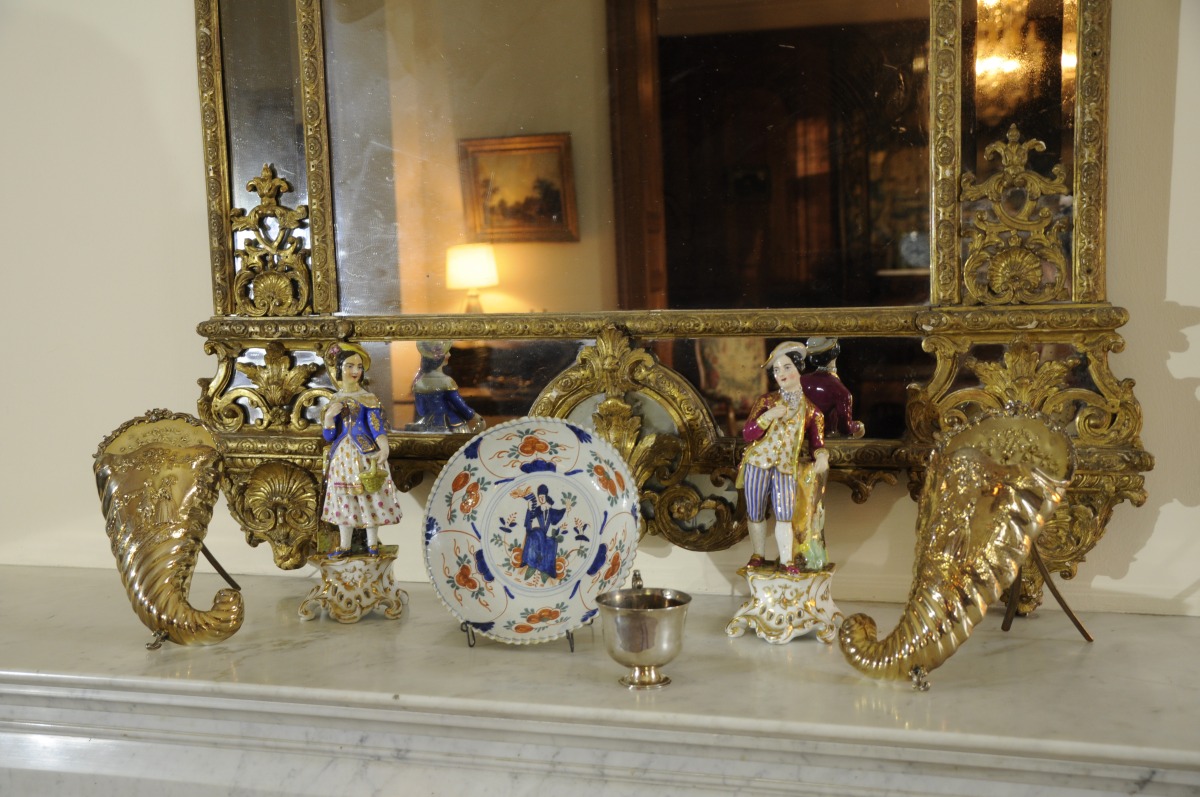 Paire de CORNETS en argent à décors estampé de scènes galantes dans un entourage fleuri. Poinçons couronnés et fleur-de-lysés. Travail étranger moderne. Hauteur: 26 cm.