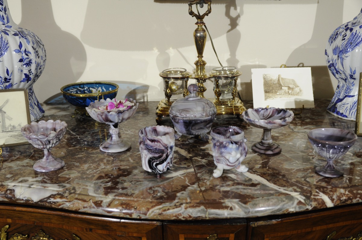 Ensemble JASPÉ ROMANTIQUE en verre dans les tons mauves comprenant...