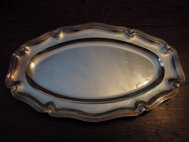 PLAT OVALE batte contour de style Louis XV à coquille. Métal argenté. Longueur 49, Largeur 31 cm.