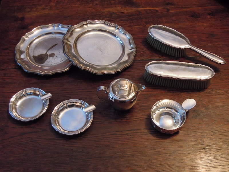 LOT en métal argenté : POT À CRÈME, deux CENDRIERS,...