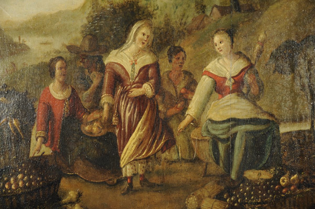École HOLLANDAISE du XVIIIème siècle.Paysanne au travail.Panneau.79,5 x 64 cm...