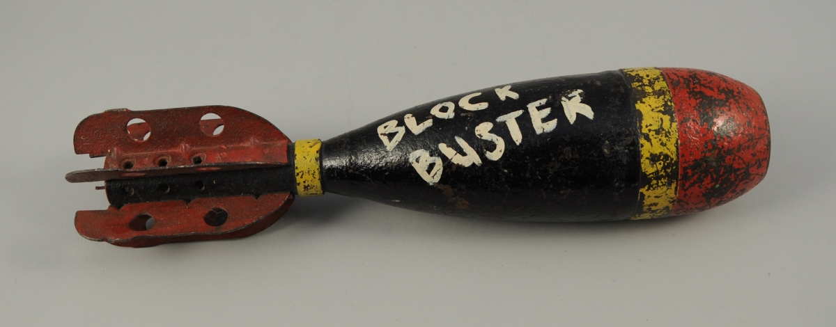 OBUS "Block Buster" en métal peint en noir, rouge, et jaune (sans amorce).