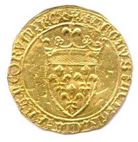 Écu à la Couronne, 5e émission (2 novembre 1411). Villeneuve-lès-Avignon 3,77 g