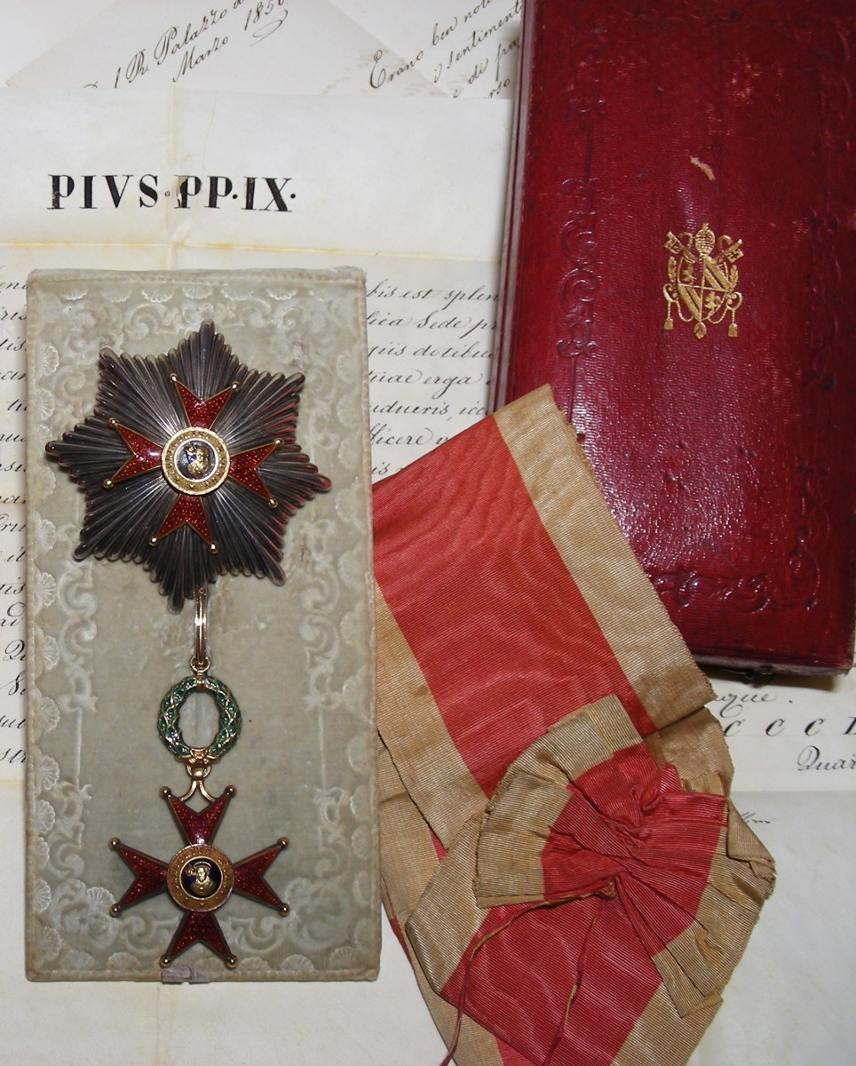 ORDRE DE SAINT-GREGOIRE LE GRAND, institué par Grégoire XVI en 1831, ensemble complet de grand-croix à titre civil remis en mars 1850 à Ramón Luis Irarrázaval, ministre du Chili près le Saint-Siège.