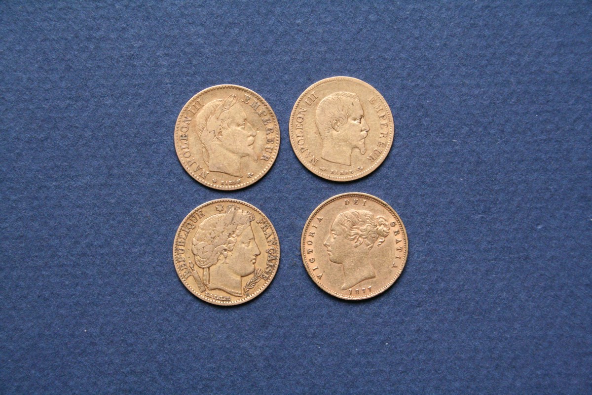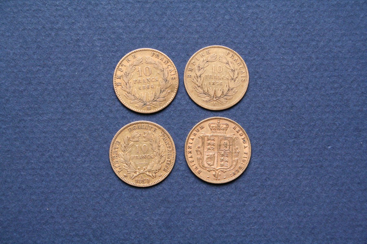 Lot: 3 pièces 10 F or, et 1 ½ souverain, Victoria TTB