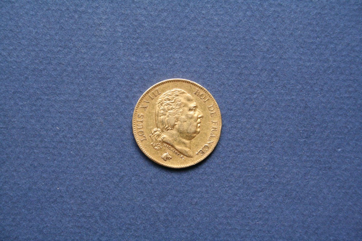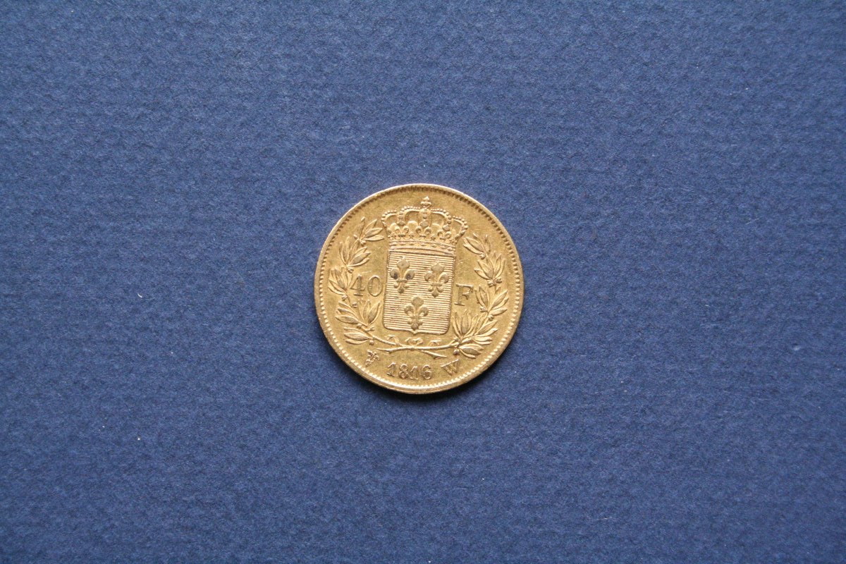 France, Restauration, 1815-1824, Louis XVIII, 40 F or, W=Lille, frappé à 3 186 exemplaires, 12,85g