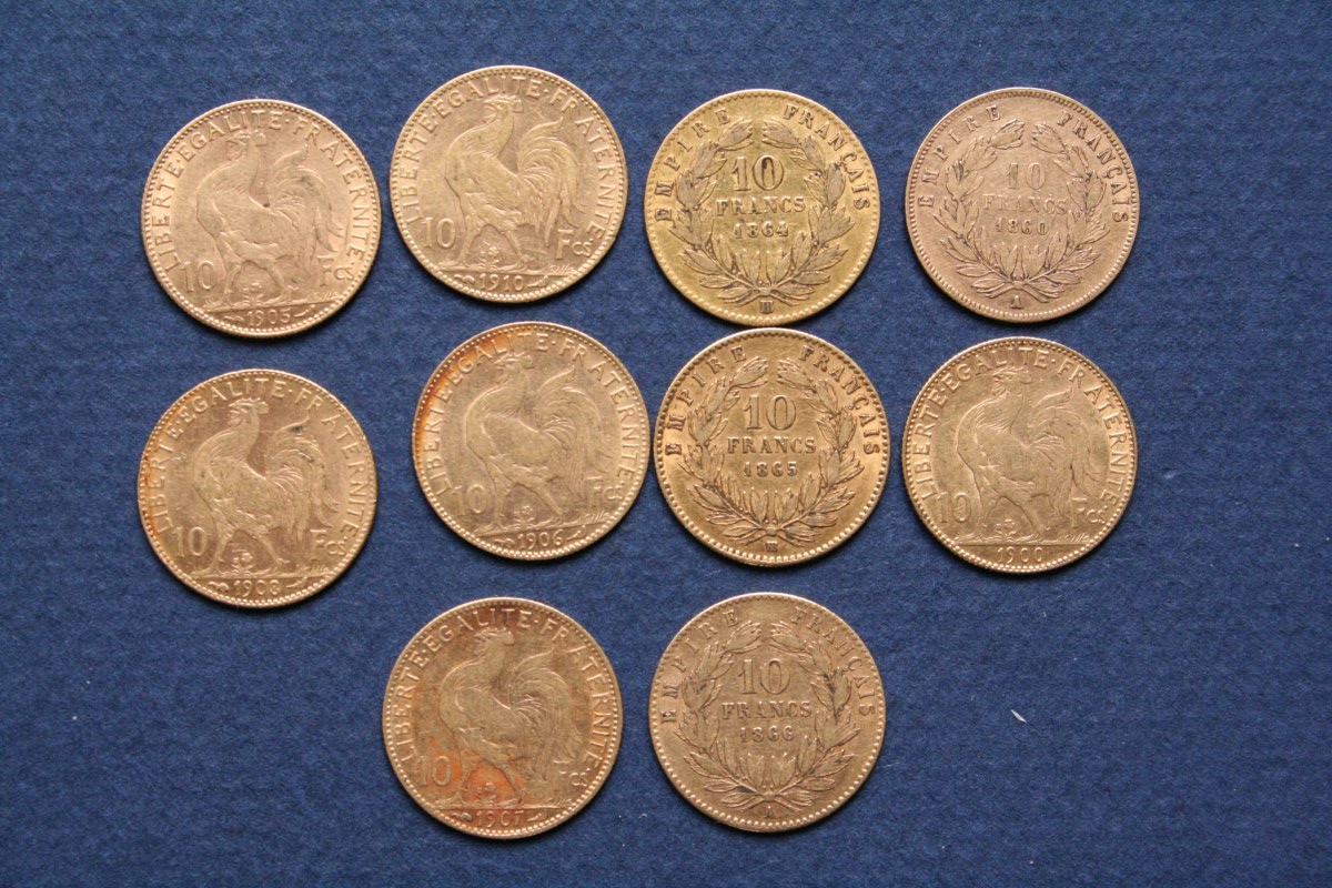 Lot: France, 10 pièces de 10 F or (Napoléon et type au coq) TTB