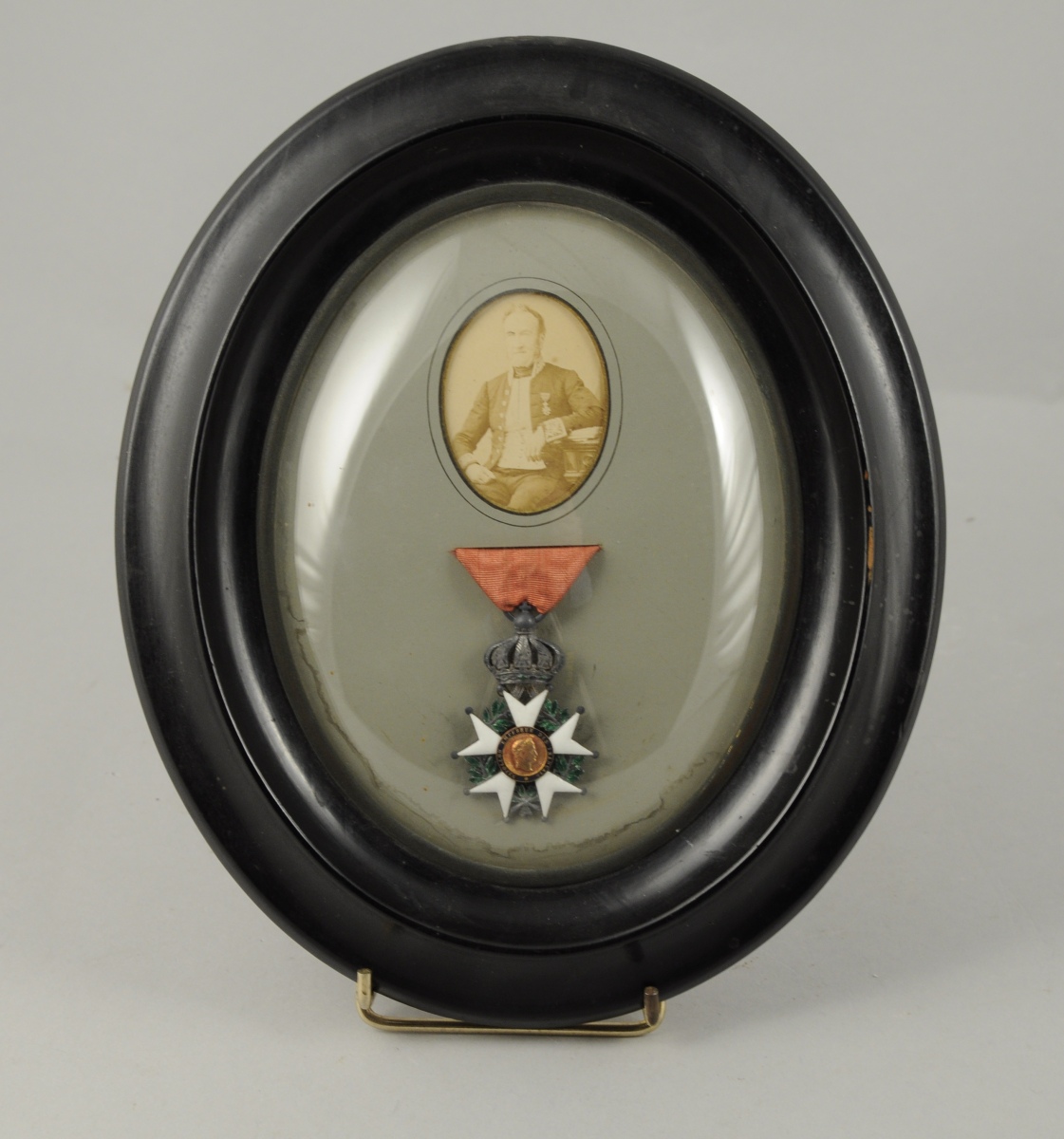 Cadre à la LEGION D'HONNEUR, avec photo d'un accadémicien. Haut. 28 cm.