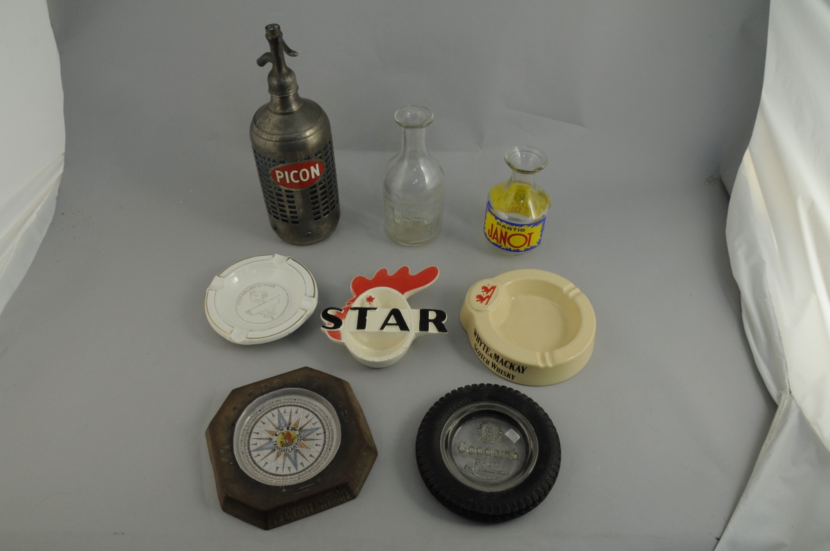 - Quatre cendriers de marque "GOODRICH", "WHYTE and MACKAY", "STAR" et "CREDIT POPULAIRE DE FRANCE".