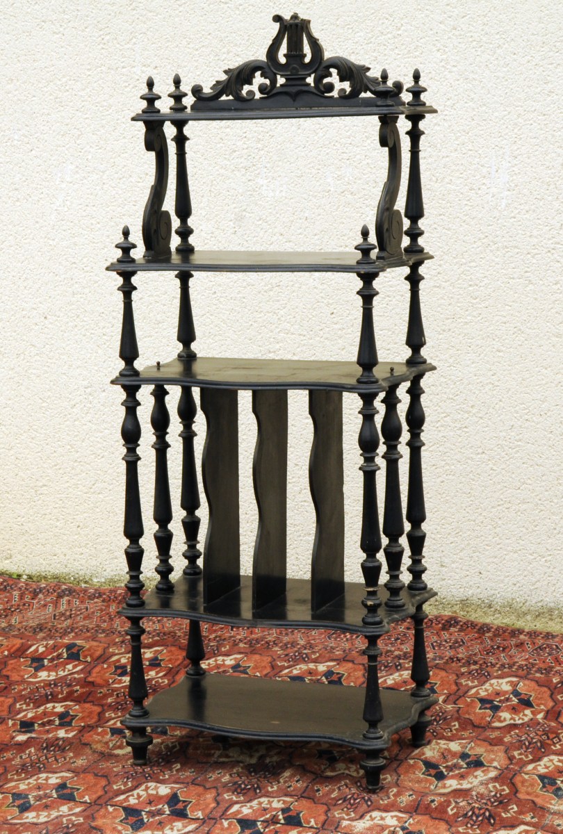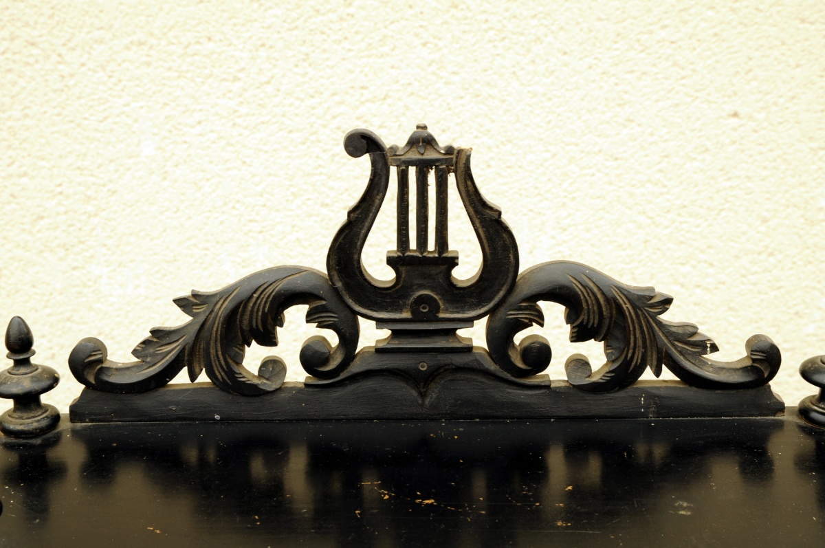 CASIER à MUSIQUE en bois noirci, orné d'une lyre (petit accdt.). Fin XIXème début XXème. siècle.