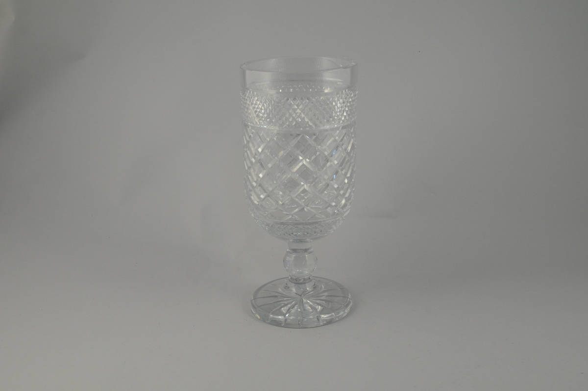 VASE sur piédouche en cristal taillé. La base reçoit en décor une étoile, le corps des pointes de diamants et un quadrillage. Il porte sur la base une etiquette marquée "MADE IN POLAND". XXème.