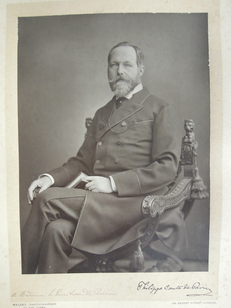 Deux tirages noir et blanc dédicacés à l'encre: " à Madame la Comtesse de Poncins ". Timbres: " Isabelle Comtesse de Paris " et " Philippe Comte de Paris ".