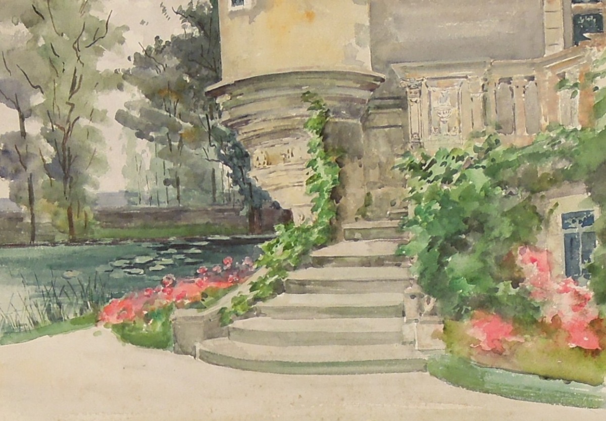 Marguerite de BIENCOURT. Escalier d'Azay le Rideau. Aquarelle. 27 x...