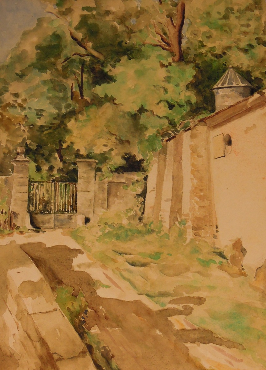 Murs d'enceinte. Aquarelle légendée au crayon au dos: " Copie d'après une aquarelle de Ed. Pujol Paris juillet 1887. 35 x 26,5 cm.