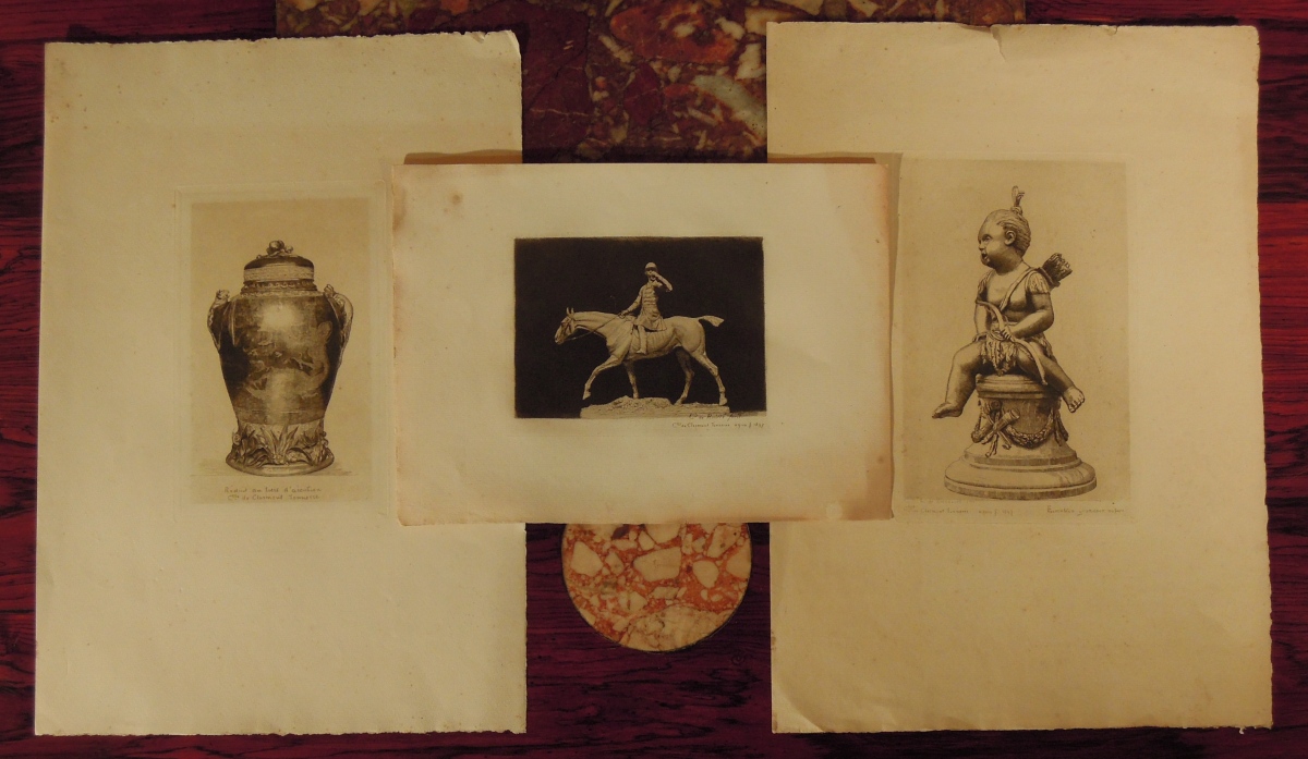 Vase et Angelot. Deux projets d'orfèvrerie gravés par sa fille la Comtesse de CLERMONT-TONERRE. 44,5 x 31,5 cm.