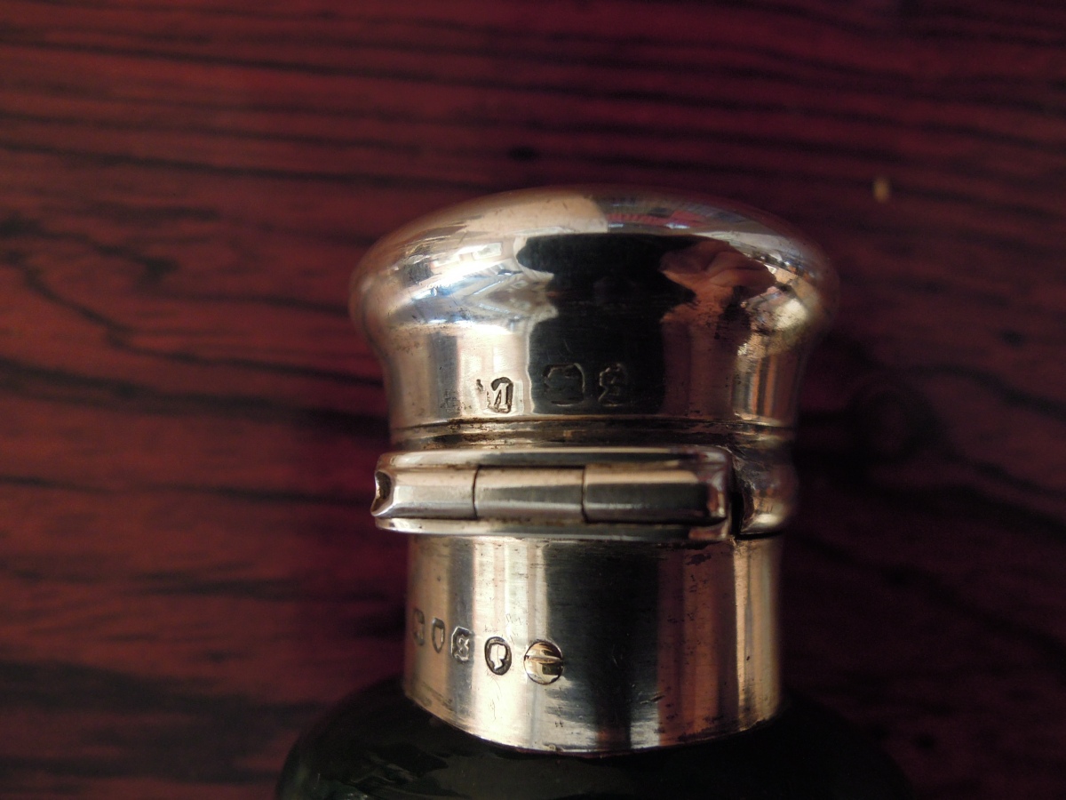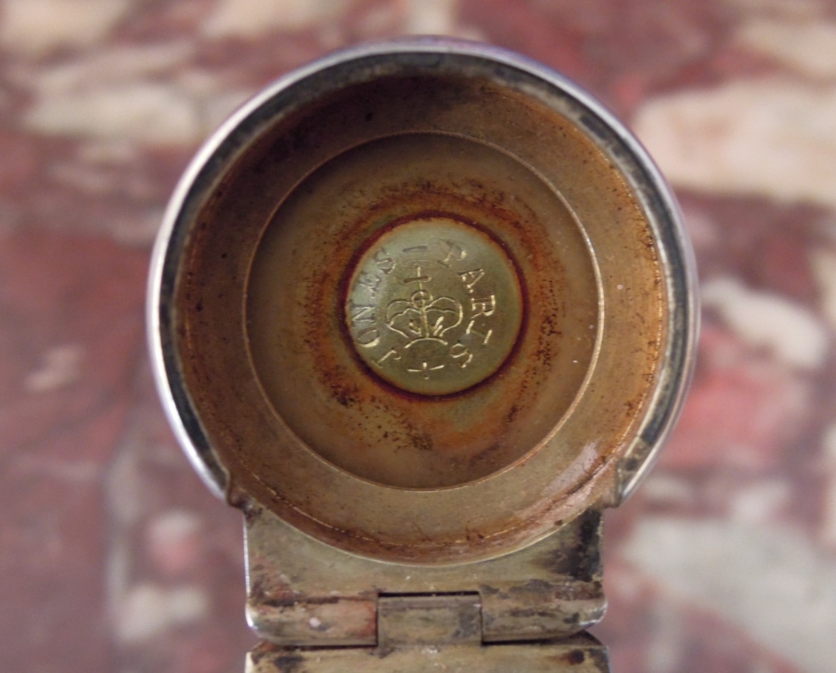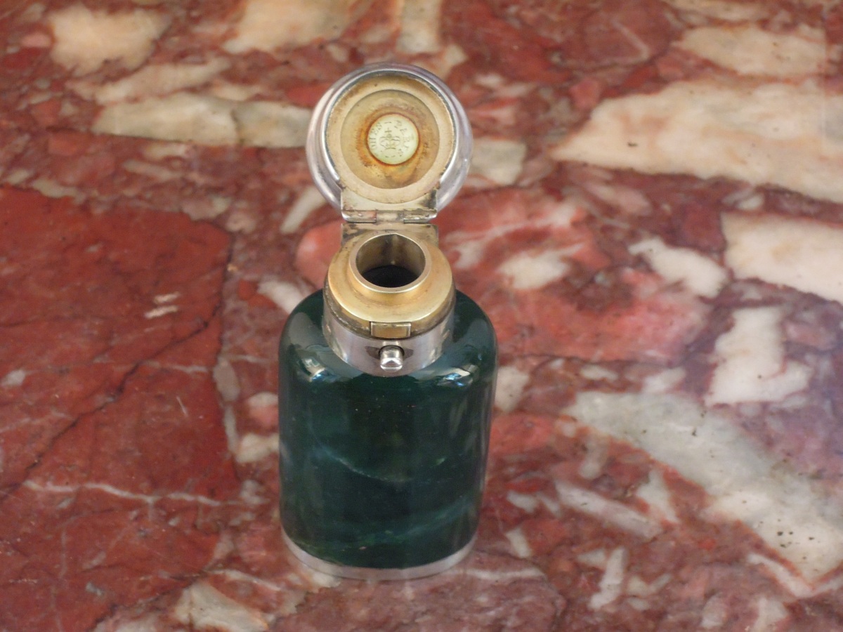 FLACON en agate et argent, l'intérieur du couvercle gravé " Jones Paris ". Poinçons anglais. Travail anglais du début XXème.
