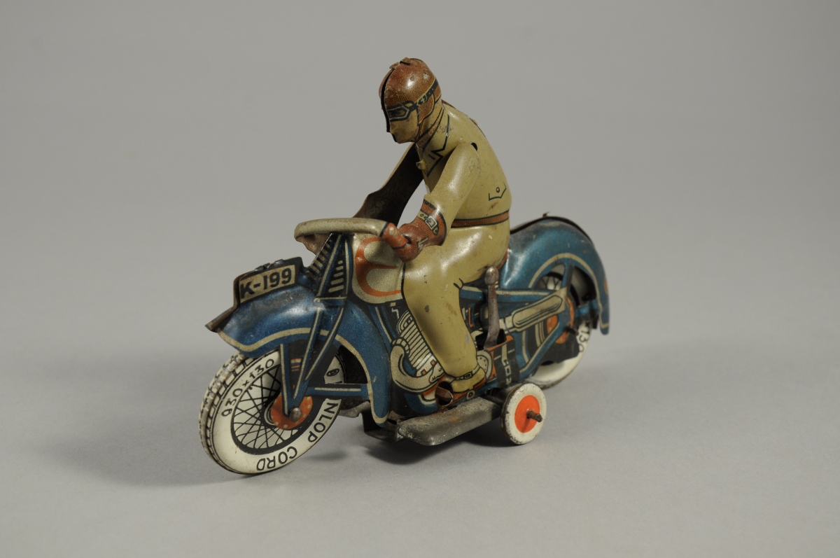 ALLEMAGNE. Motocyclette en tôle. Mécanique. Réf K - 199. Lithographié bleu et beige.