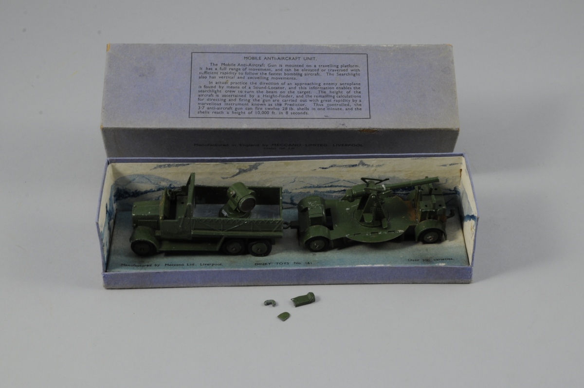 DINKY TOYS anglais. UNITÉ MOBILE Anti-Aircraft, vert, réf. 161. Dans sa boîte. (projecteur accidenté)