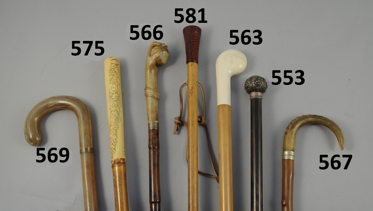 CANNE avec pommeau ovoïde en ivoire, imitant un club de golf. Fût en amboine et bouterolle en ivoire. Haut. 89,5 cm. (bouterolle restaurée)