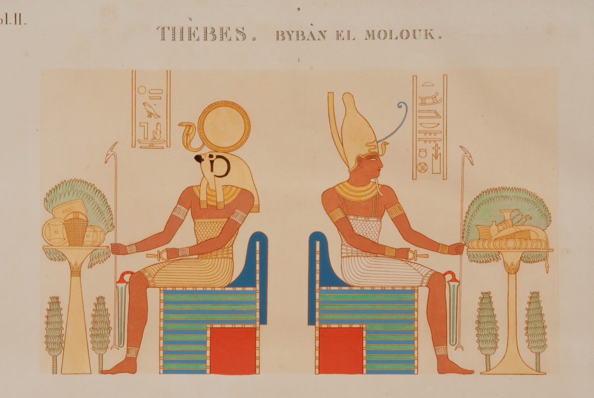 - Antiquités: 5 vol. in-folio contenant 426 planches (frontispice compris) dont 30 pl. en couleurs et la carte de l'Egypte ancienne. Les 5 pages-titres sont roussies sinon beaux ex.