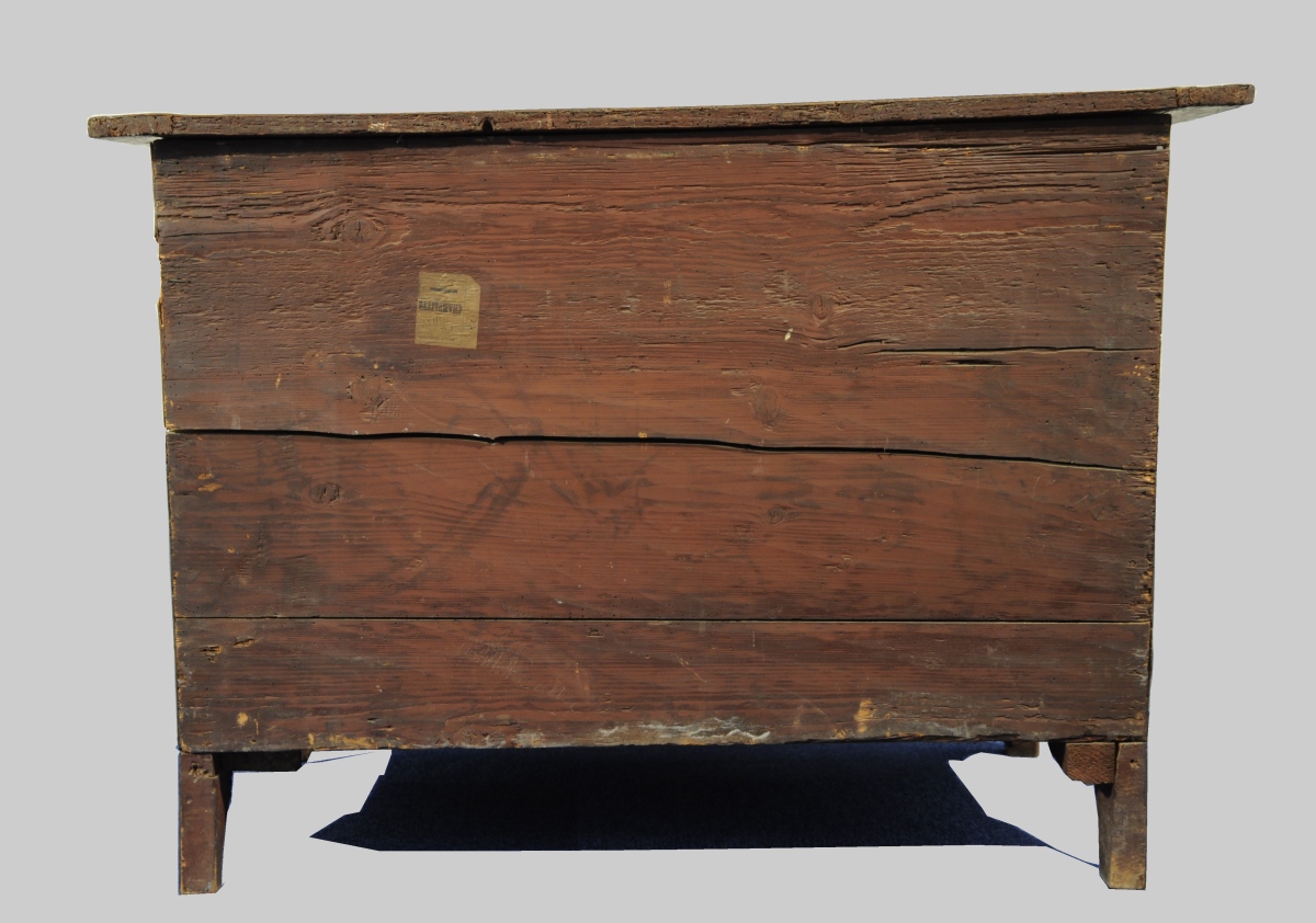Haut. 86,5, Larg.121,5, Prof. 66 cm. (manques et accidents au placage).