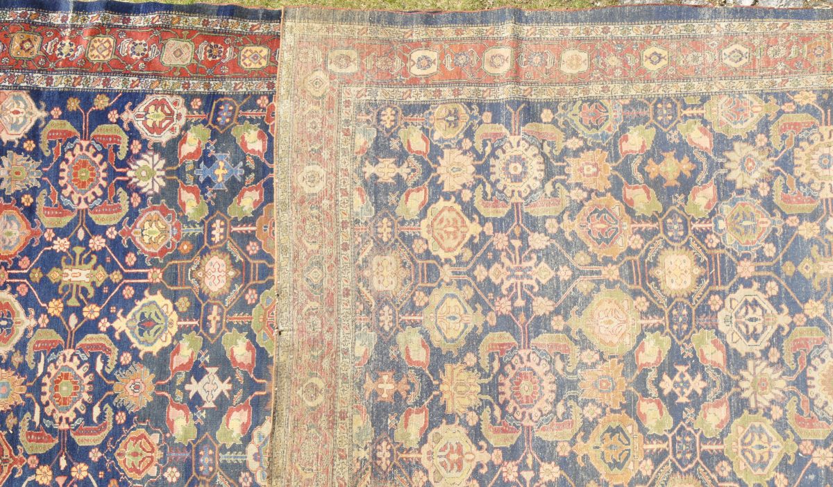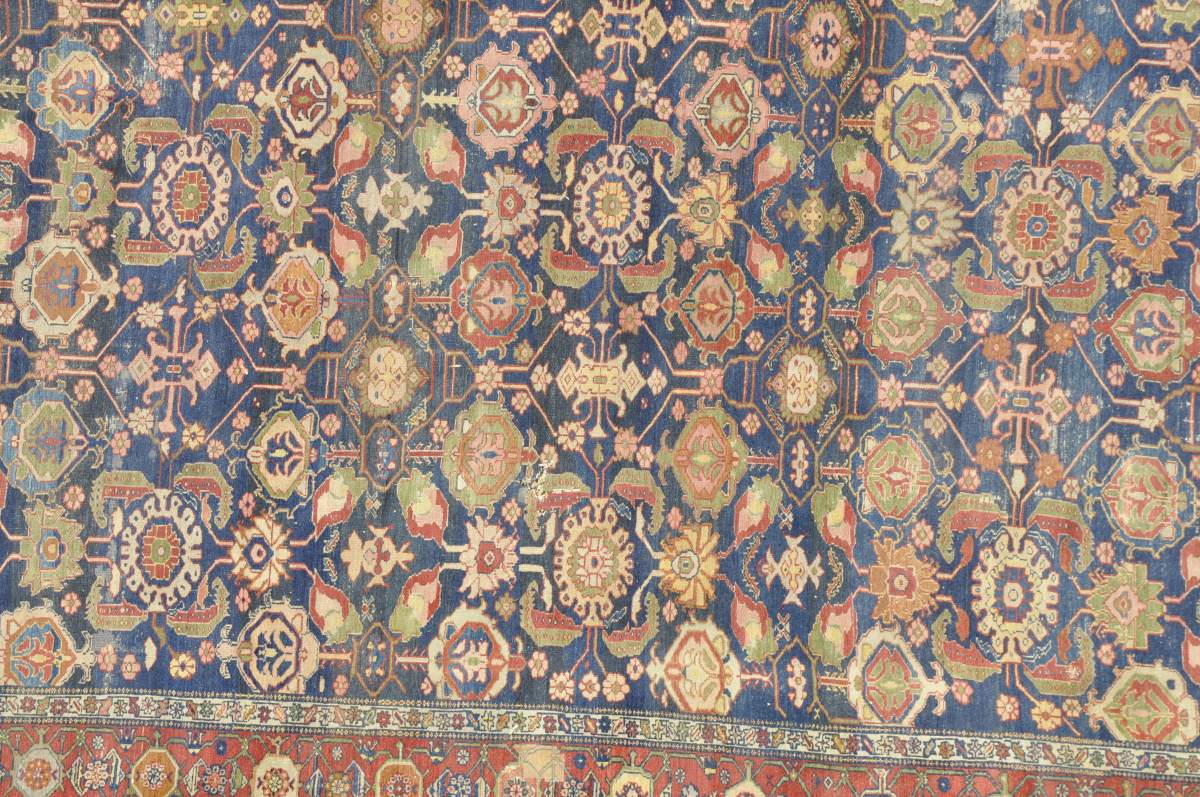MAHAL.Grand TAPIS en laine à fond bleu orné de pattes...