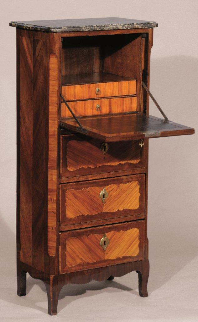 Haut. 107, Larg. 48,5, Prof. 30,5 cm. (piètement restauré, petits manques et restaurations au placage).