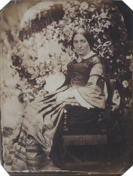 Négatif et positif: Femme à l'ombrelle dans un jardin, vers 1855