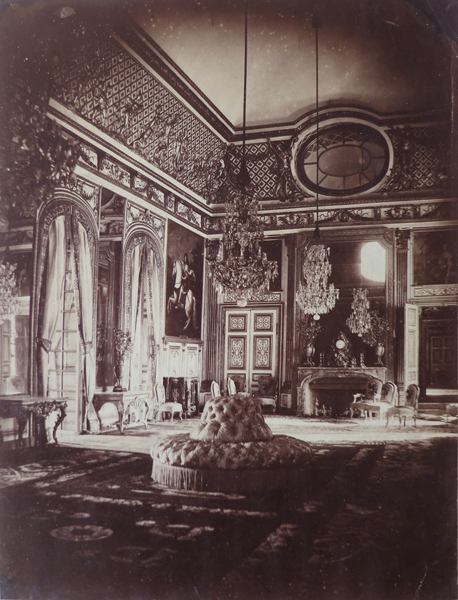 Le château de Versailles vient d'acquérir un album composé de 7 photographies d'Eugène Disdéri mettant en valeur des lieux hautement symboliques du château: la façade de la cour Royale, la chambre de Louis XIV, l'antichambre de l'OEil-de-Boeuf, la galerie des Batailles, le salon de la Paix, la Chapelle ainsi que la galerie des Glaces. Ces images représentent les salles vides ornées à l'occasion de la visite de la Reine avant son arrivée et témoignent d'une grande splendeur: c'est le seul reportage photographique du Château réalisé à cette période.