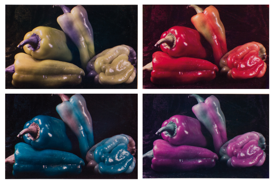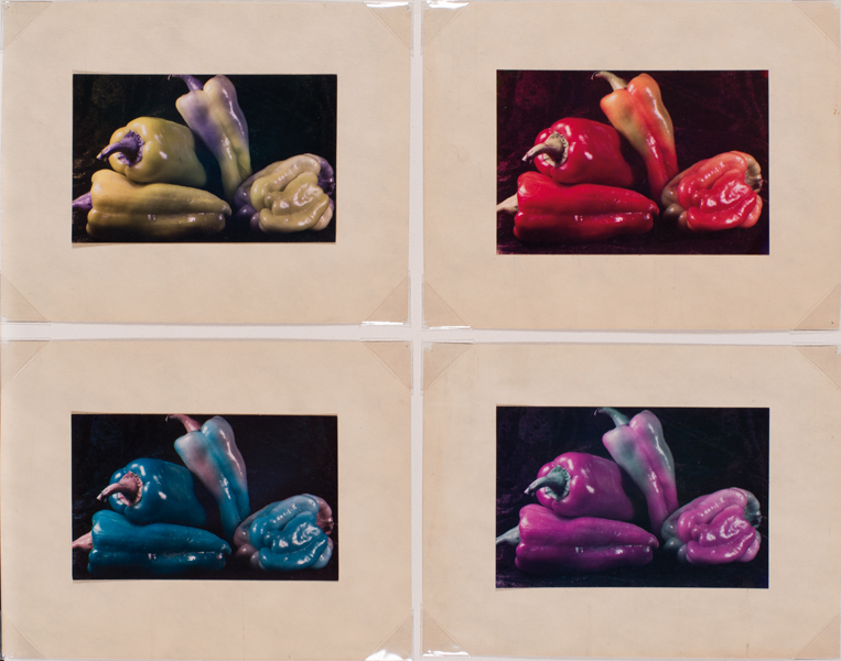 Poivrons jaunes, rouges, bleus et violets, années 1950