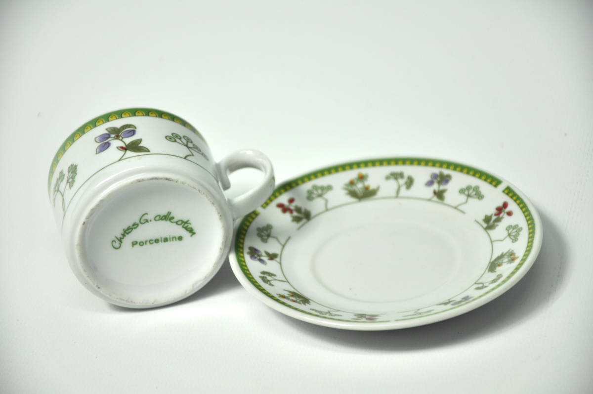 Lot de 11 TASSES ET SOUCOUPES en porcelaine à motifs...