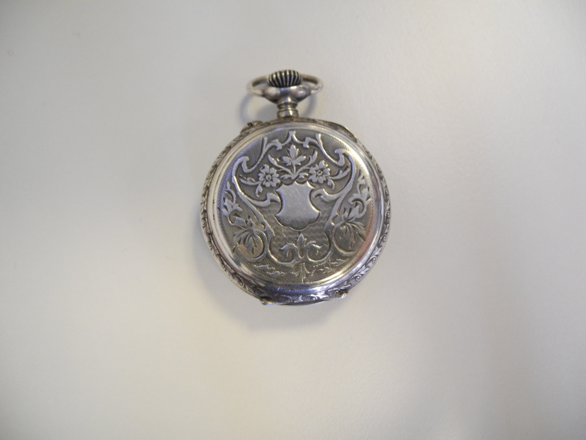 MONTRE DE GOUSSET avec motifs fleuris et deux cadrans à chiffres romains et arabes