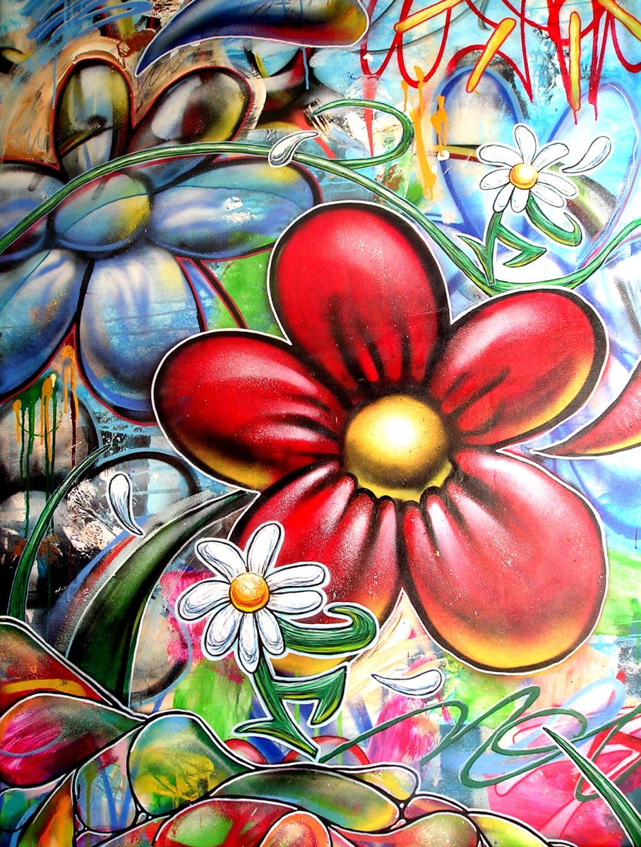 Né en 1968 dans le 93, C'est à la fois un réalisateur, et un plasticien. Autodidacte. Il est issu du hip hop et de la création collective en milieu urbain. Il a participé à de nombreux projets, en voyageant avec le cur jusqu'à Soweto par exemple où on connaît bien ses fleurs. Il a accepté pour cette uvre de charité de nous réaliser une flower toile comme il les nomme, gaie et colorée, car après tout la fleur selon Arnaud Rabier, c'est un symbole universel de paix, d'échange et d'amour et elle se doit de l'incarner.