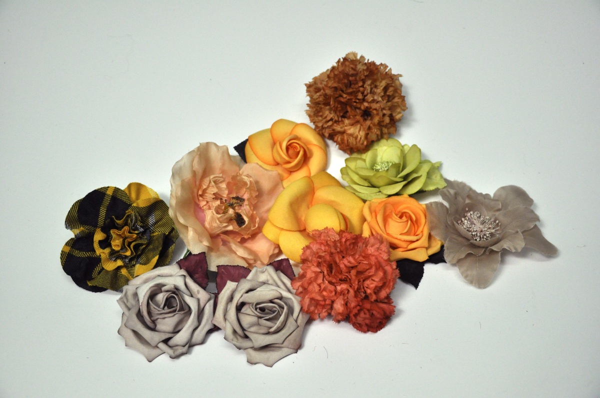 Lot de 11 fleurs artificielles dans les tons automnaux.