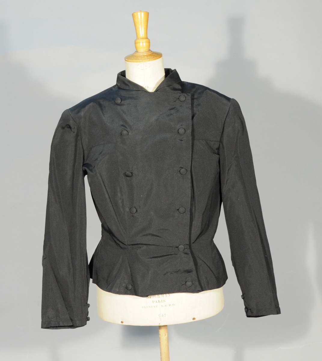 BOLÉRO griffé MADAME GRÈS, vers 1950. Faille noir par Robert Perrier. Double rangée de boutons. Pour Madame Robert Perrier.