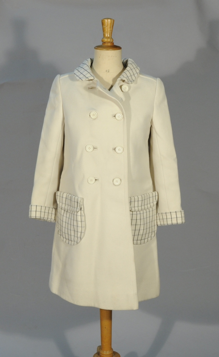 MANTEAU COURRÈGES, vers 1950. Laine ivoire de Robert Perrier pour Madame Robert Perrier.