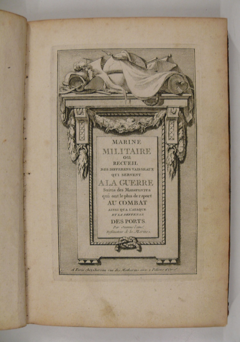 MARINE - OZANNE (Nicolas Marie). Marine militaire ou recueil des différens vaisseaux qui servent à la guerre, suivis des manoeuvres qui ont le plus de rapport au combat ainsi qu'à l'attaque et la défense des ports par Ozanne l'aîné dessinateur de la marine. Paris, Chéreau, [1762].