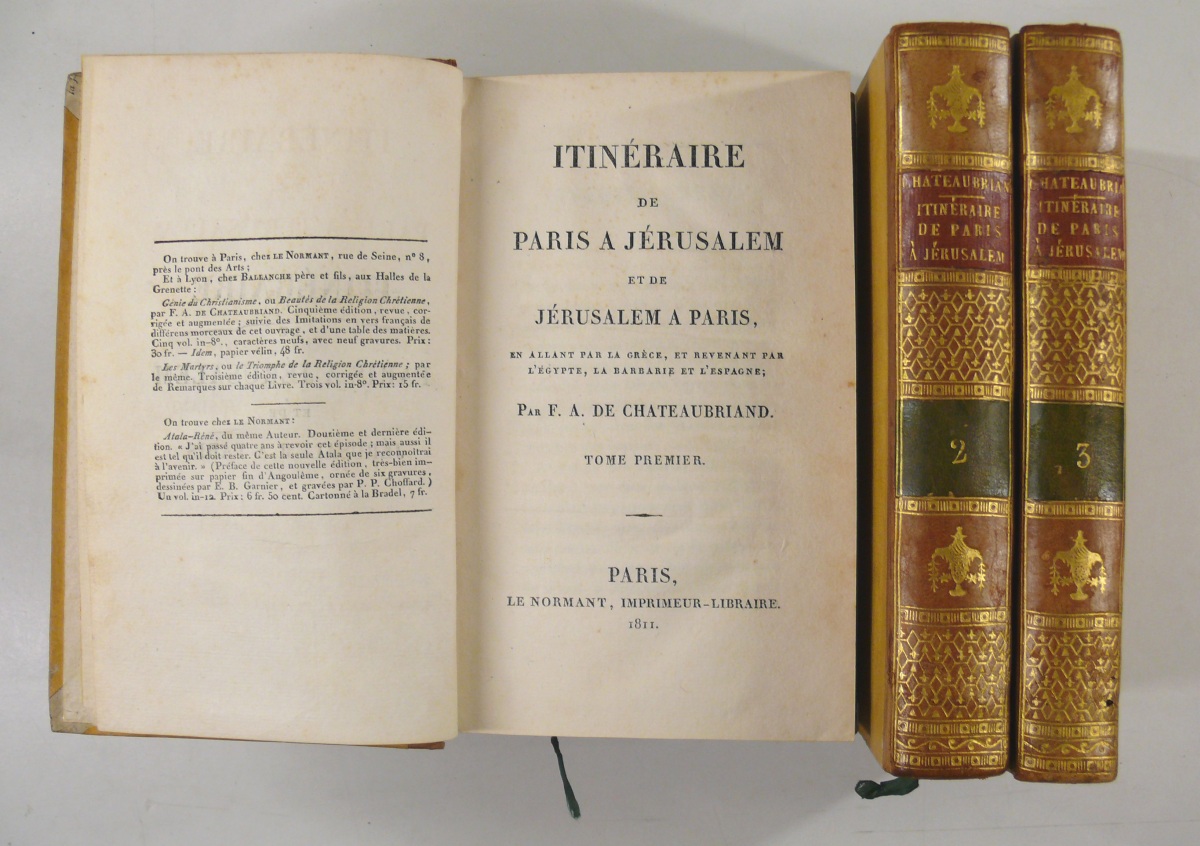 CHATEAUBRIAND (François René, vicomte de). Itinéraire de Paris à Jérusalem et de Jérusalem à Paris, en allant par la Grèce, et revenant par l'Egypte, la Barbarie et l'Espagne. Paris, Le Normant, 1811.