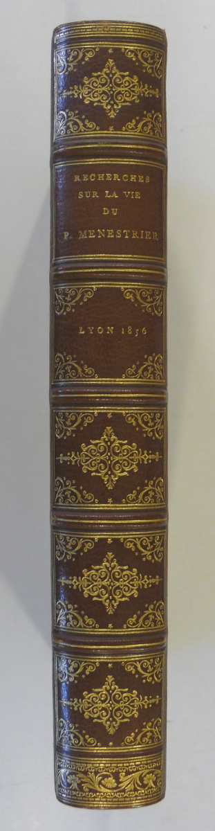 ALLUT (Paul). Recherches sur la vie et sur les oeuvres du P. Claude-François MENESTRIER, de la Compagnie de Jésus; suivies d'un recueil de lettres inédites... Lyon, Scheuring, 1856.