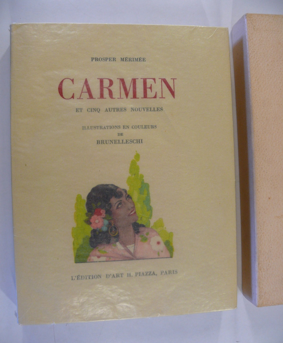 BRUNELLESCHI (Umberto) & Prosper MERIMEE. Carmen - La Vénus d'Ille - Mateo Falcone - L'enlèvement de la redoute - Le vase Etrusque - La dame de pique. Illustrations en couleurs de Brunelleschi. Paris, Piazza, 1948.