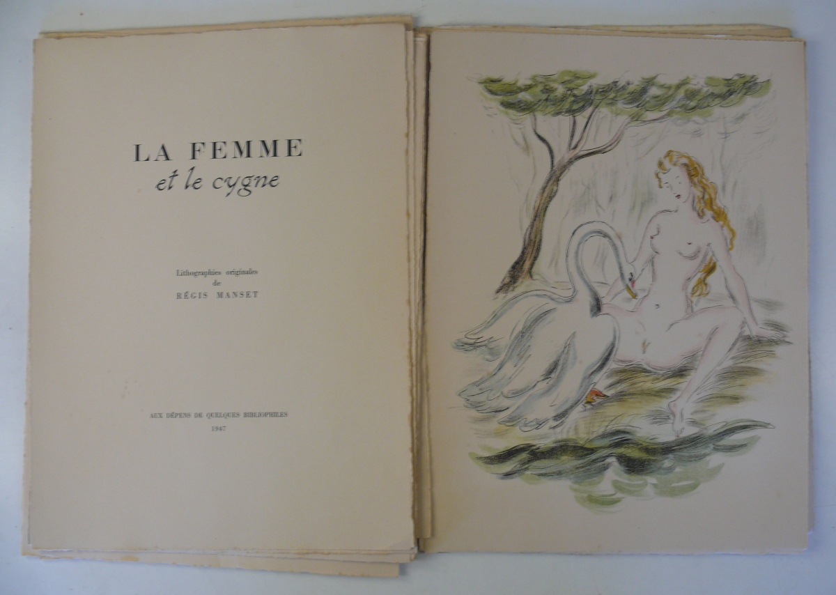 RANSET (Régis). La femme et le cygne, lithographies originales de Régis Manset. sl, Aux dépens de quelques bibliophiles, 1947.