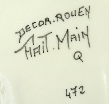Encrier forme trèfle pour un godet encrier avec bouchon à prise bouton. Décor de Rouen.